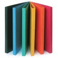 Kartona mape A4 formāta, aplīmēta ar krāsainu PVC plēvi ārpusē un baltu PVC plēvi iekšpusē.