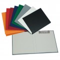 A5 formāta planšete ar vāku. Kartons aplīmēts ar krāsainu PVC plēvi ārpusē un baltu PVC plēvi iekšpusē.
